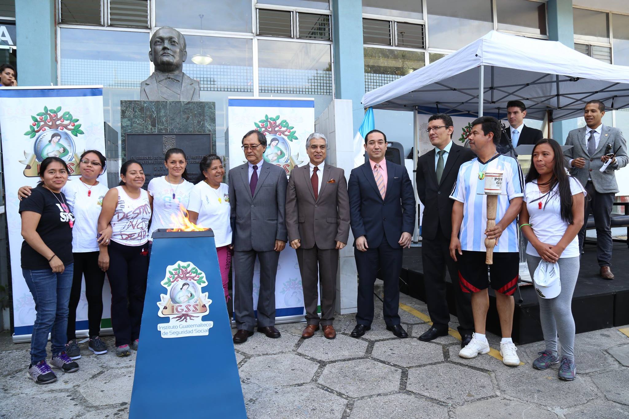 A las ocho de la mañana fue realizado el acto del encendido de “Las Antorchas de la Seguridad Social” en el que participó una gran cantidad de empleados de las distintas unidades quienes luego de participar en un acto que presidido por el presidente de la Junta Directiva Carlos Contreras y otras autoridades, encendieron su antorcha y se dirigieron a sus respectivas sedes.