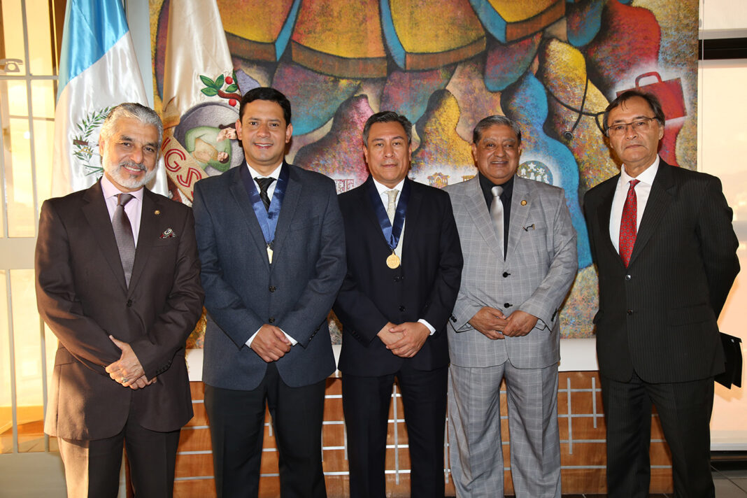 Los exdirectivos de la Junta Directiva, Alvaro Manuel Trujillo y Federico Borrayo, recibieron esta tarde, la Medalla de la Seguridad Social, condecoración máxima que entrega el Instituto Guatemalteco de Seguridad Social, por la labor que realizaron durante su gestión como Vicepresidentes de la Junta Directiva del IGSS en pro de la atención en los servicios y seguridad social de los afiliados del Instituto.