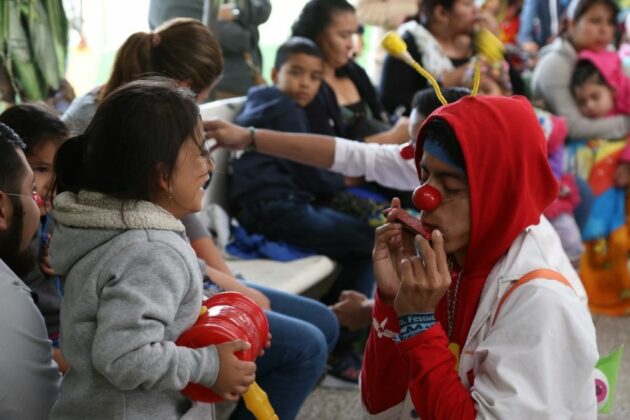 Mientras los niños y niñas asistentes esperaban su turno se divirtieron con integrantes del grupo Fábrica de Sonrisas, pintacaritas y globoflexia. Además se les entregó una refacción, así como algunas sorpresas.