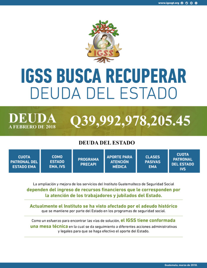 Deuda del Estado al IGSS a febrero de 2018: Q.39,992,978,205.45