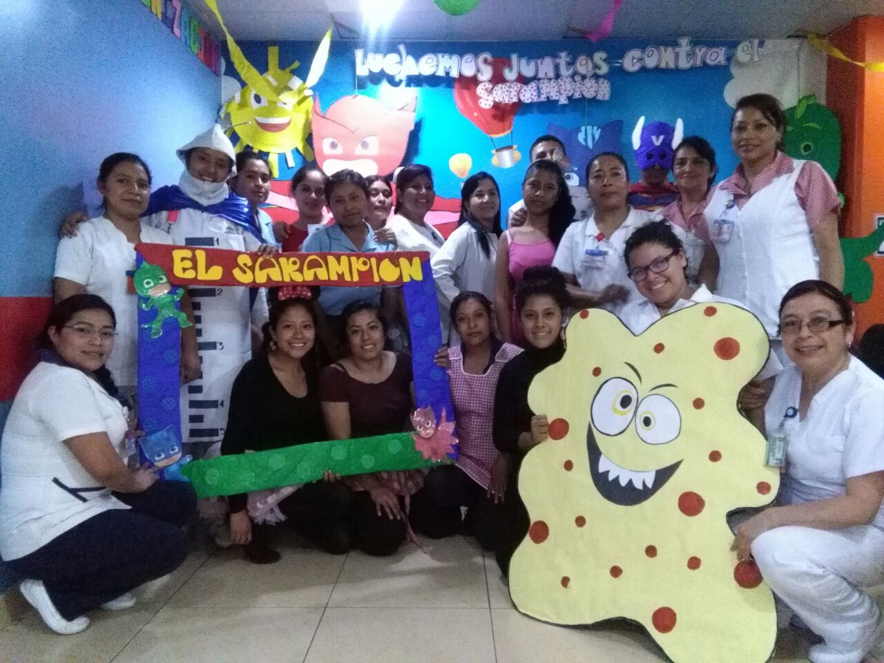 Finalmente, estudiantes de la Escuela de Auxiliares de Enfermería del Instituto Guatemalteco de Seguridad Social (IGSS) presentaron el sociodrama “Súper Vacuna”, representando la lucha de este superhéroe contra el sarampión.