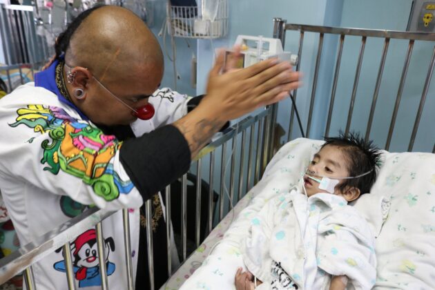 Integrantes de la agrupación Fábrica de Sonrisas compartieron hoy con los niños y niñas que acompañados de sus padres o encargados asistieron a su cita a los servicios de la Pediatría del Hospital Juan José Arévalo Bermejo, del IGSS de la zona 6.