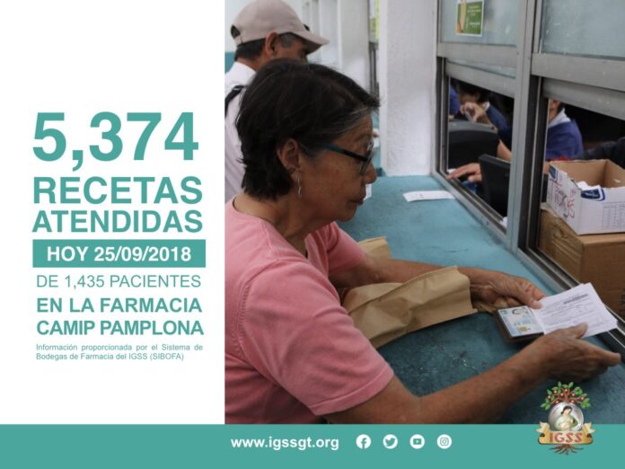 5,374 recetas atendidas en la farmacia CAMIP Pamplona 25 septiembre, 2018 TwitterWhatsAppLinkedin Recetas atendidas hoy 25/09/2018 en la farmacia #CAMIP Pamplona: 5,374 recetas de 1,435 pacientes. Información proporcionada por el Sistema de Bodega y Farmacia (SIBOFA) del #IGSS.