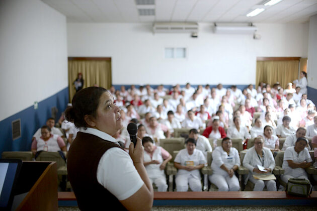 Personal de enfermería de las áreas de maternidad, pediatría, consulta externa y médico quirúrgica del Hospital Dr. Juan José Arévalo Bermejo reforzaron sus conocimientos en temas de zika, farmacodinamia y tuberculosis durante una capacitación que estuvo a cargo de la educadora en salud Karen Alvizures.