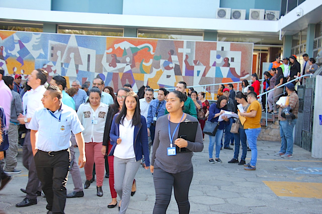Cumplir con los protocolos de seguridad ante un posible terremoto fue el propósito del simulacro en el que participaron hoy más de 2,500 trabajadores del edificio de las Oficinas Centrales del IGSS, como parte de la actividad “Macro Simulacro 4F”, organizado por la Municipalidad de Guatemala y la CONRED.