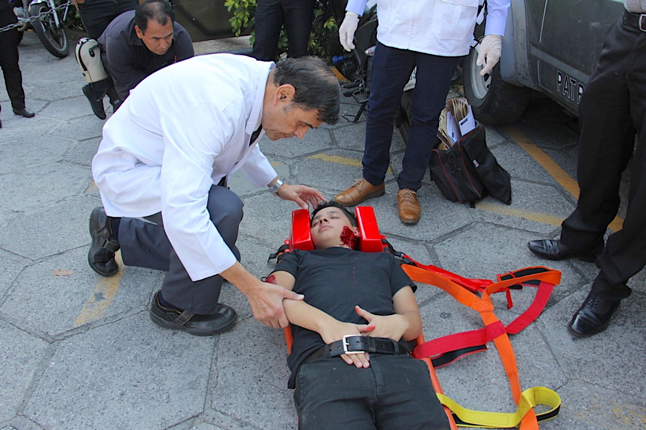 La evacuación del recinto tuvo una duración de ocho minutos, la cual incluyó la atención de tres personas, entre ellas dos que simularon estar heridas, así como una afiliada que se encontraba realizando trámites quien sufrió shock nervioso, informó el doctor Mynor Mejía, jefe de la Sección de Seguridad e Higiene y Prevención de Accidentes.
