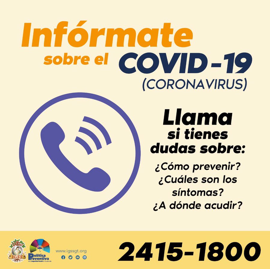 El Instituto Guatemalteco de Seguridad Social IGSS, pone a disposición de la población guatemalteca el teléfono 2415-1800. Llame sí tiene dudas sobre el COVID-19.