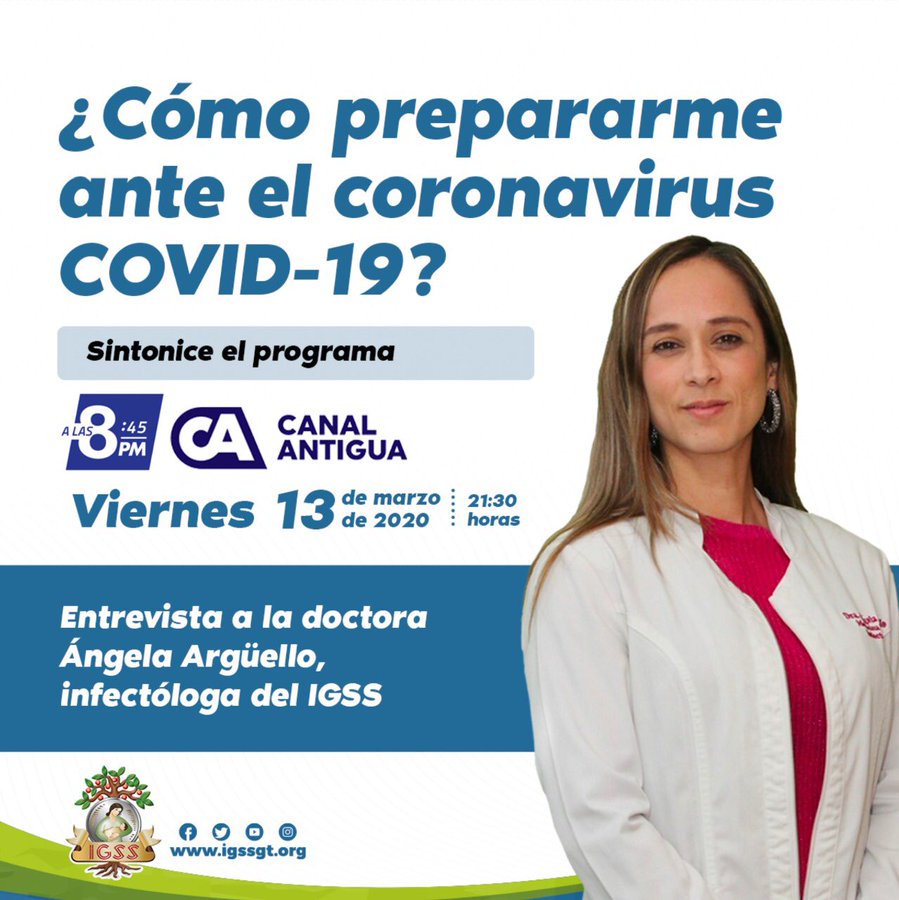 Entrevista a la doctora Ángela Arguello 13 marzo, 2020 TwitterWhatsAppLinkedin No se pierda: la entrevista en Canal Antigua con la doctora Ángela Argüello, infectóloga del IGSS, a partir de las 21:30 horas.
