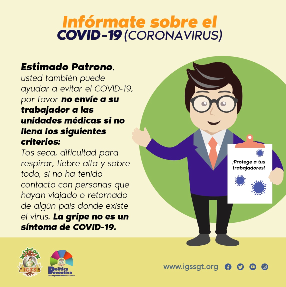 Aviso. Infórmate sobre el COVID-19 (CORONAVIRUS) 20 marzo, 2020 TwitterWhatsAppLinkedin Señor patrono unámonos para contener la propagación del coronavirus #COVID19. Más información en ► http://ow.ly/Rn6750yOoPX