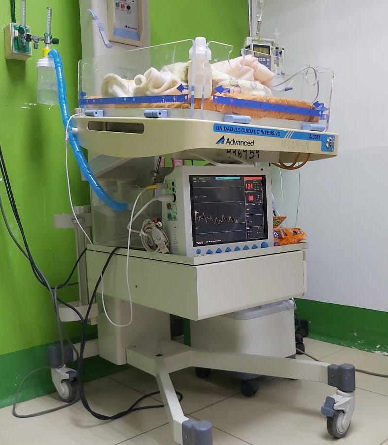 La unidad de cuidados intensivos cuenta con cinco cunas pediátricas, dotadas con ventiladores mecánicos y monitores de signos vitales, equipo que está a servicio de la población, en la sala de cuidados intensivos de la referida unidad médica.