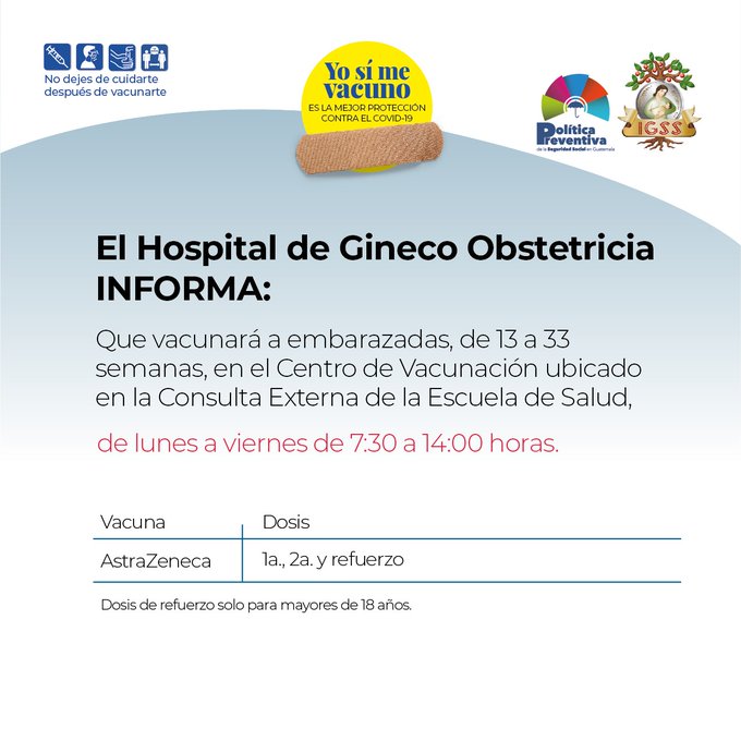 El Hospital de Gineco Obstetricia informa sobre el Centro de Vacunación contra COVID-19 para embarazadas de 13 a 33 semanas.
