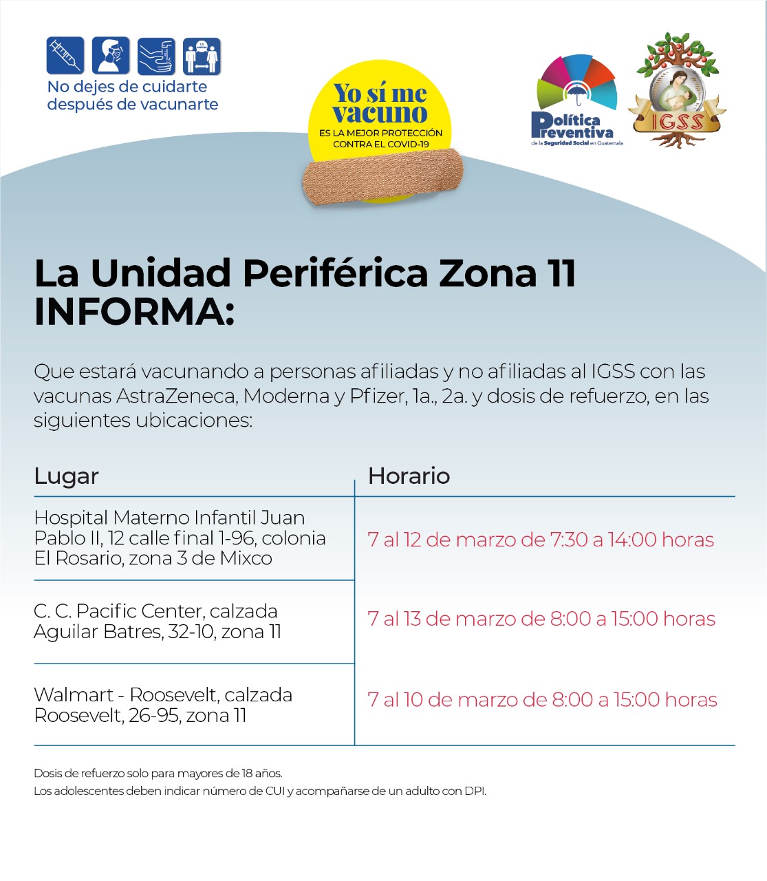 La Unidad Periférica Zona 11 dispone de tres puestos de vacunación al servicio de afiliados o no al IGSS.