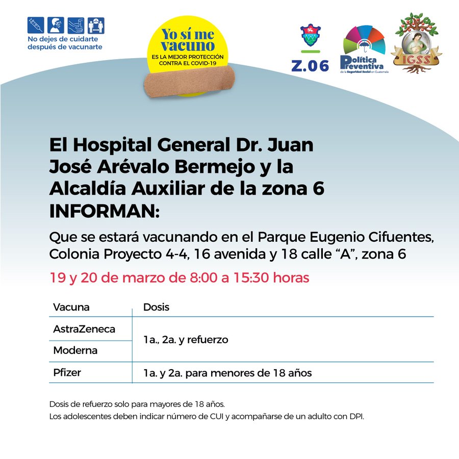 Aviso. El Hospital General Dr. Juan José Arévalo Bermejo y la Alcaldía Auxiliar de la zona 6 INFORMAN: