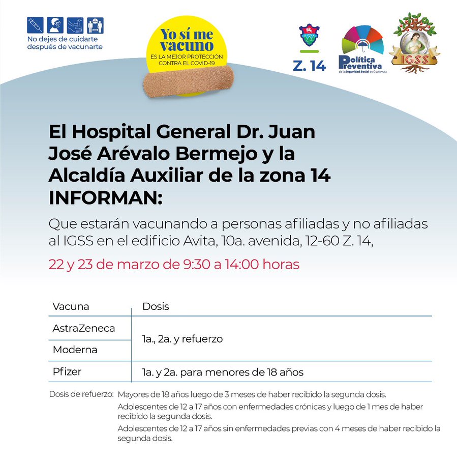 Se vacunará contra el COVID-19 en el Edificio Avita, 10 Av. 12-60, Z. 14.
