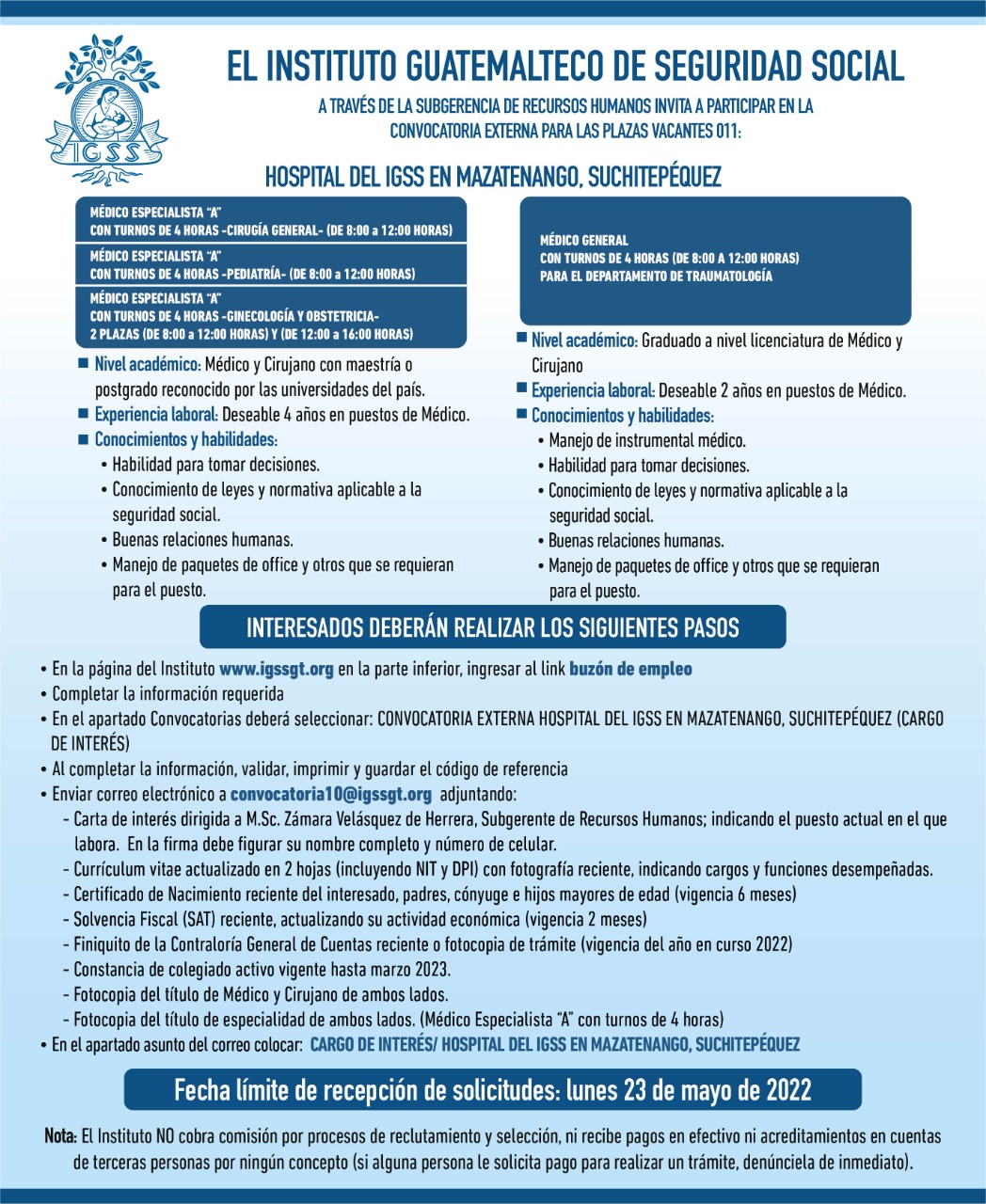 Fecha límite de recepción de solicitudes: lunes 23 de mayo de 2022