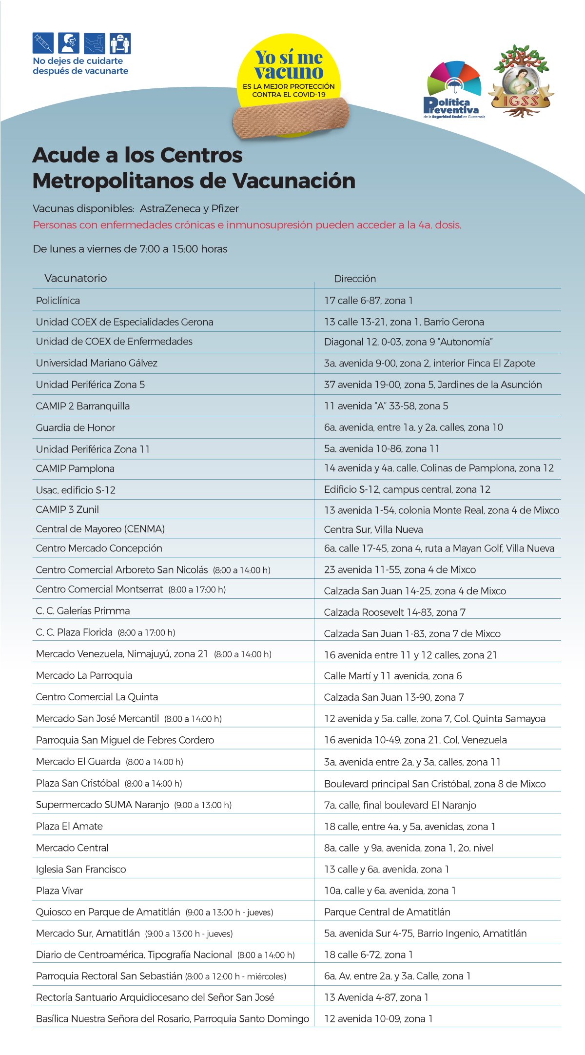 Aviso. Acude a los Centros Metropolitanos de Vacunación