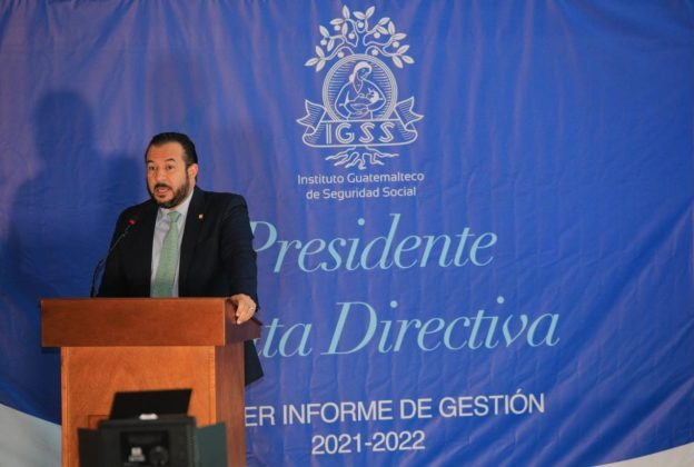 El licenciado José Adolfo Flamenco Jau, presidente del IGSS, designado para el período 2021-2027, presentó su Primer Informe Anual de Labores ante miembros de la Junta Directiva y la Administración que lo han acompañado desde que asumió el cargo el 4 de junio de 2021.