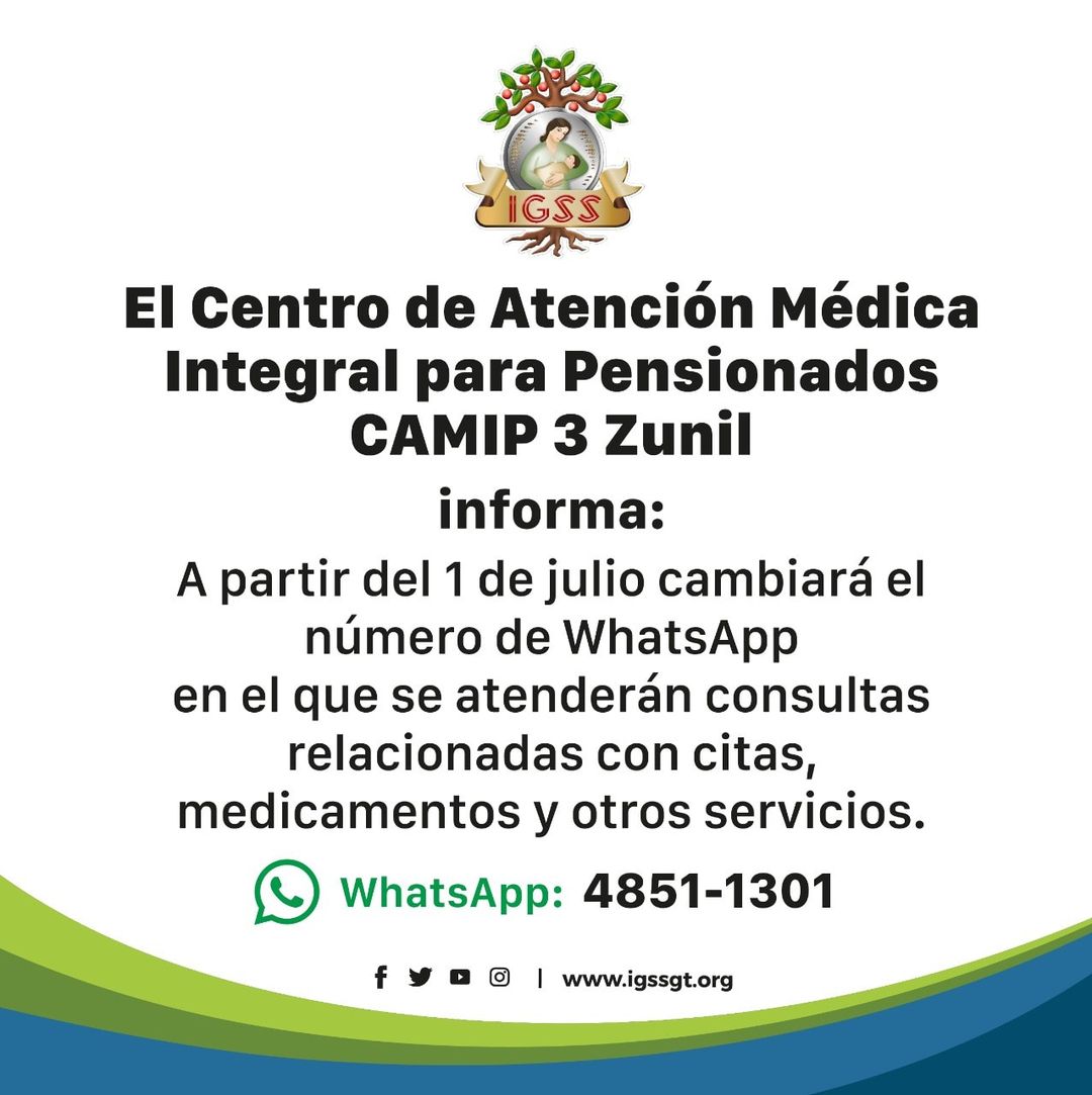 Aviso. El Centro de Atención Médica Integral para Pensionados CAMIP 3 Zunil informa:
