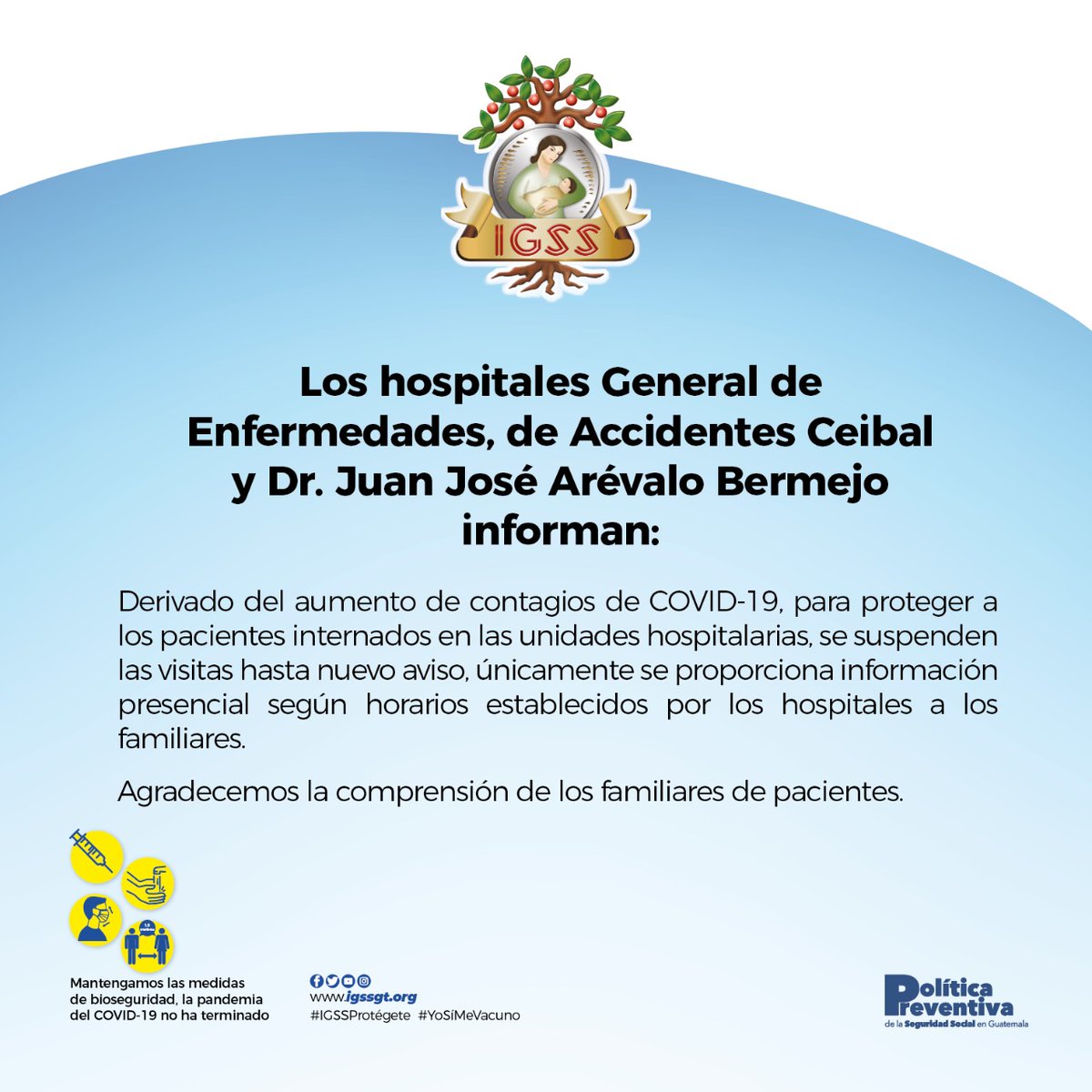 Aviso. Los hospitales General de Enfermedades, de Accidentes Ceibal y Dr. Juan José Arévalo Bermejo informan: