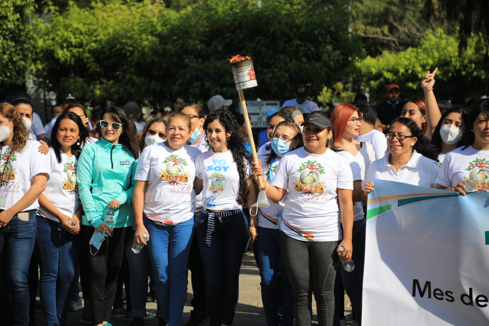 Motivados por la celebración, los trabajadores del IGSS recorrieron las calles citadinas para conmemorar un aniversario de esta noble institución que vio nacer su labor social en 1946. Delegaciones de las unidades médicas de la región metropolitana, así como de Villa Canales, Amatitlán, Sololá y Zacapa, encendieron las antorchas en un ambiente de júbilo.