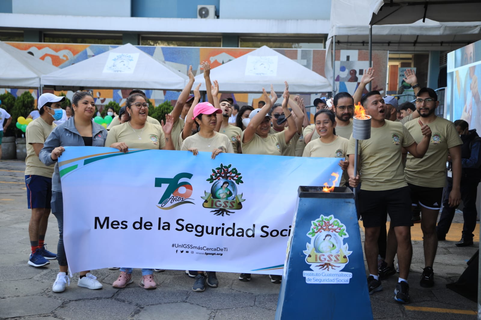 Las autoridades del Instituto Guatemalteco de Seguridad Social (IGSS) continuaron con las festividades programadas en el mes del 76 aniversario de la institución, este miércoles procedieron al encendido de la antorcha de la Seguridad Social, acto que se celebró en el estacionamiento de las Oficinas Centrales.