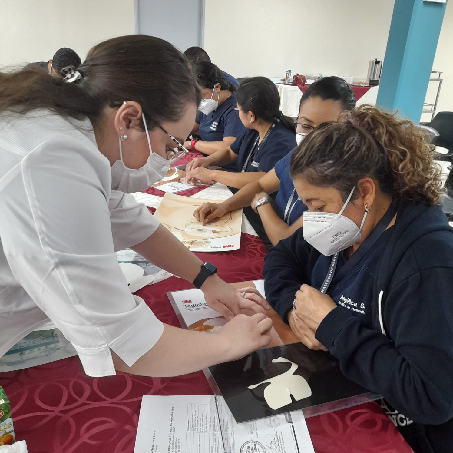 Técnicos en Hemodiálisis del Hospital General de Accidentes Ceibal fortalecen sus conocimientos para la prevención de complicaciones durante la administración del tratamiento a pacientes hospitalizados.
