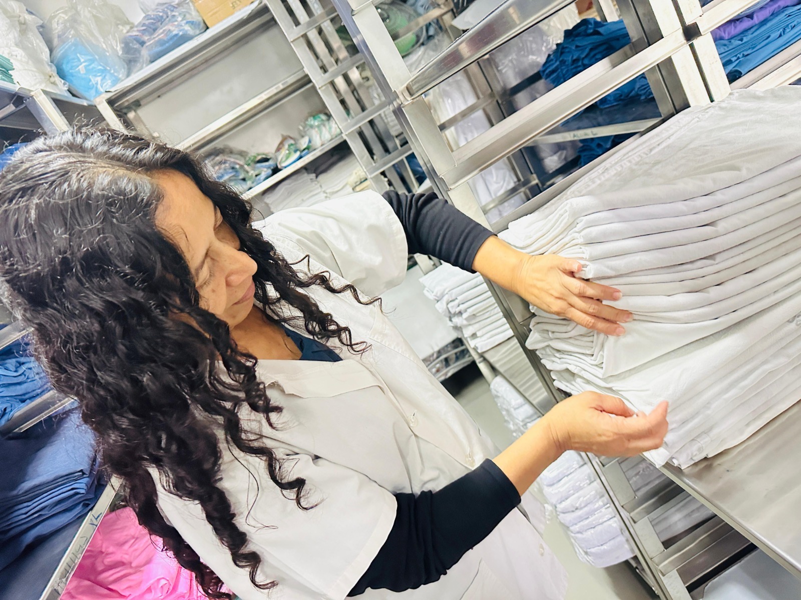 “Con el trabajo que realizamos diariamente nuestro objetivo es que el paciente tenga la atención que se merece con sus prendas limpias y su ropa de cama limpia ante cualquier acontecimiento que se presente por la enfermedad que lo mantiene en las instalaciones”, afirmó Cordón.