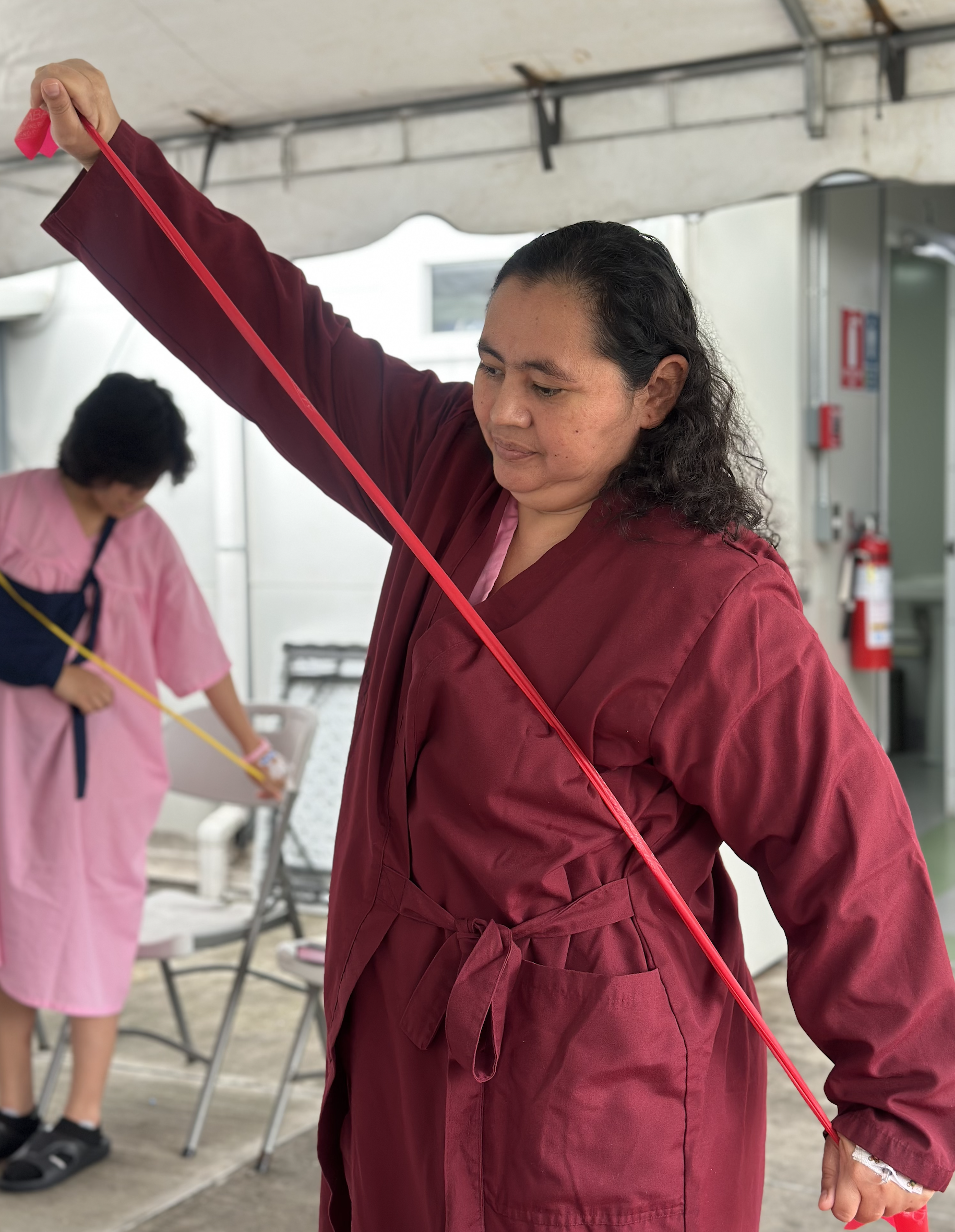 Porque sanar no solo depende de los medicamentos, en el Hospital Modular de la Unidad Periférica Zona Once ahora se imparten sesiones de gimnasia terapéutica para los pacientes. Esta iniciativa forma parte del compromiso de prestar una atención más integral, humana y activa.