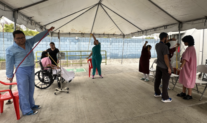 “Las actividades grupales sirven para que los pacientes salgan de los módulos y que compartan entre ellos, los resultados han sido positivos en su respuesta al tratamiento por diferentes patologías”, doctor, Alejandro Ávila, fisiatra Hospital Modular de la Unidad Periférica Zona Once.