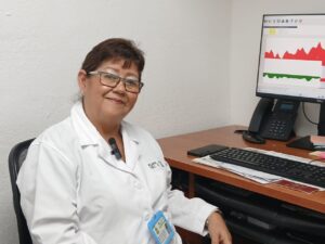 Comenta seño Almita, como cariñosamente le llaman, cuando inició el servicio el único equipo con que se contaba era un electrocardiógrafo, luego entraron los holters, los mapas, los ecos y ahora ya tienen la prueba de esfuerzo. Antes eran dos clínicas, ahora ya ha crecido tanto el equipo de especialistas como el espacio físico.