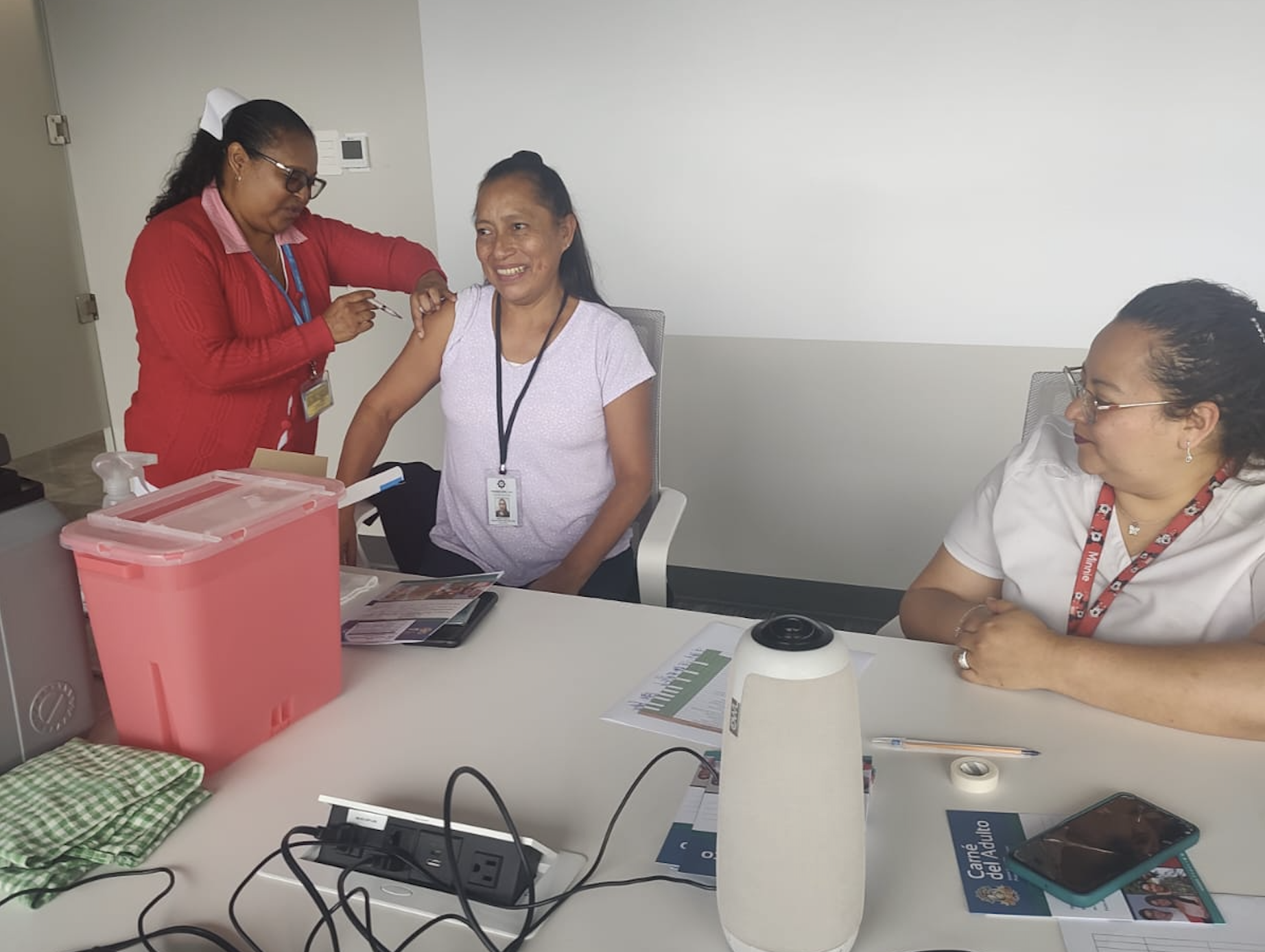 Durante la actividad, el equipo de enfermería de la Unidad aplicó vacunas contra hepatitis A y B en población adulta, con el propósito de proteger la salud ocupacional de los colaboradores y reforzar la prevención de enfermedades infecciosas en el entorno laboral.