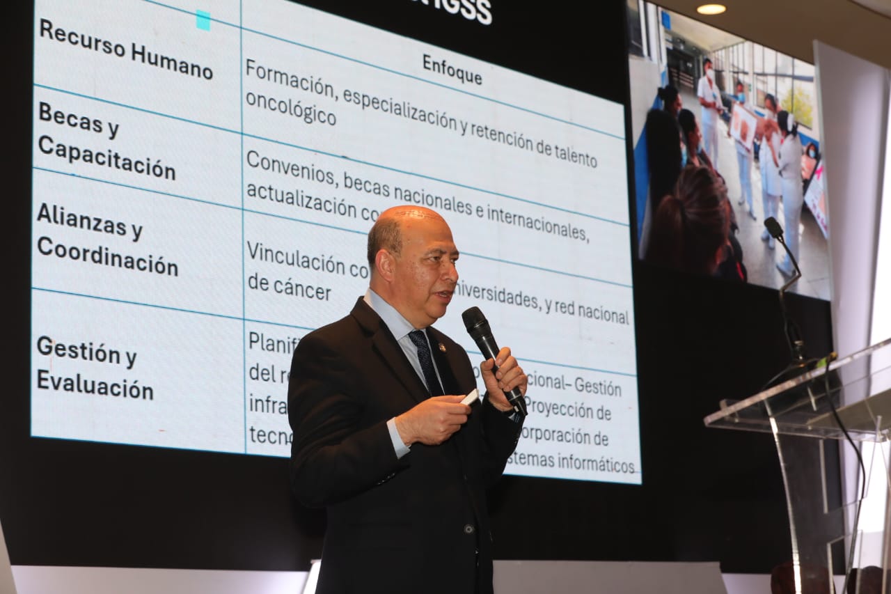 En representación del Seguro Social, el subgerente de Prestaciones en Salud, Dr. Francisco Gódinez, mencionó las acciones que el IGSS ha puesto en marcha desde su creación para fortalecer los servicios oncológicos.
