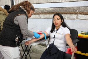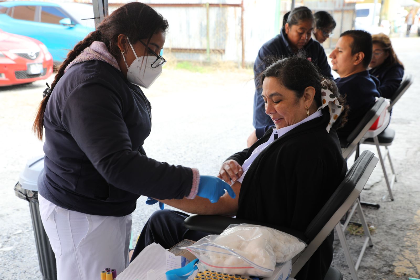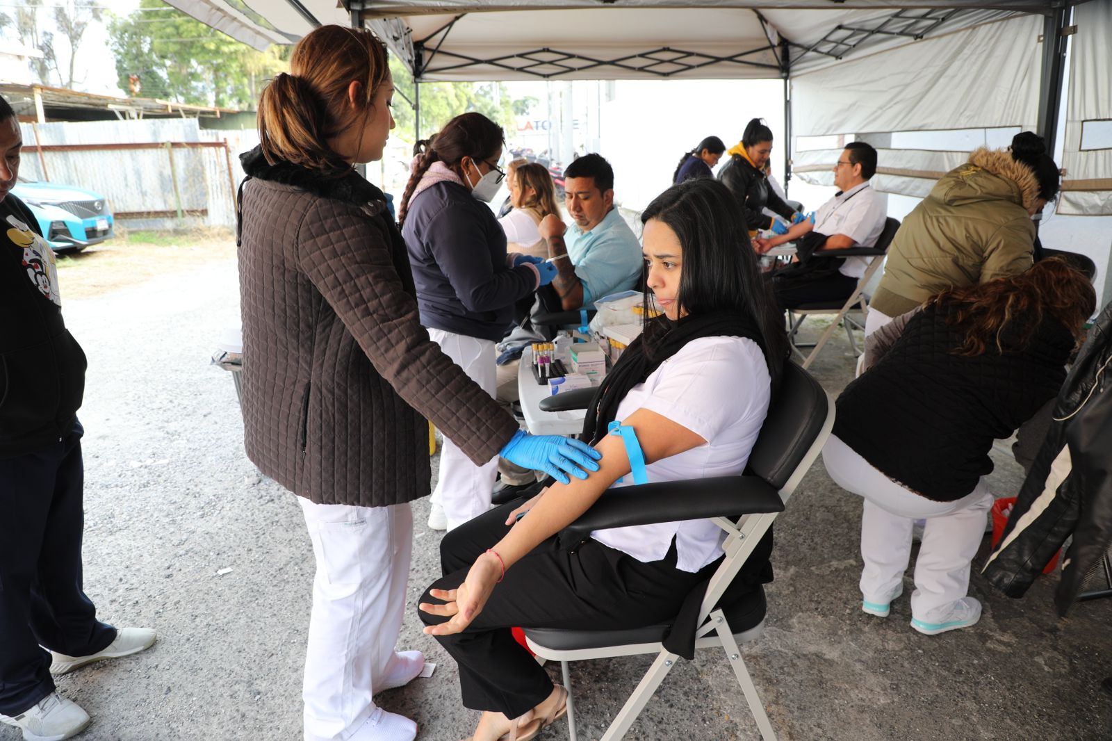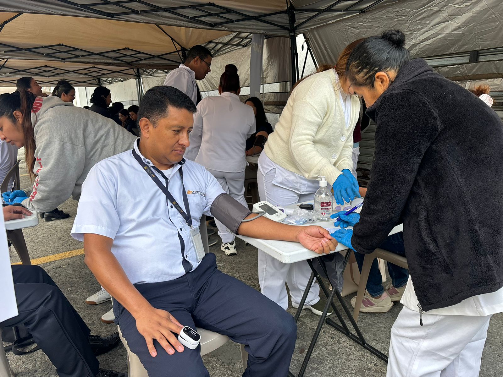 Durante la actividad, los trabajadores recibieron atención que incluyó toma de muestras de sangre, control de signos vitales y verificación de datos médicos.