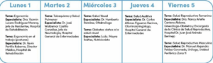 Durante la semana del 1 al 5 de diciembre, especialistas del Seguro Social están impartiendo temas fundamentales para el cuidado de la salud integral, tales como la ergonomía para prevenir lesiones en el trabajo; salud visual y auditiva para reconocer los riesgos y adoptar hábitos saludables, y salud pulmonar para fortalecer el sistema respiratorio; además, habrá un diálogo educativo sobre salud sexual para la toma de decisiones seguras.