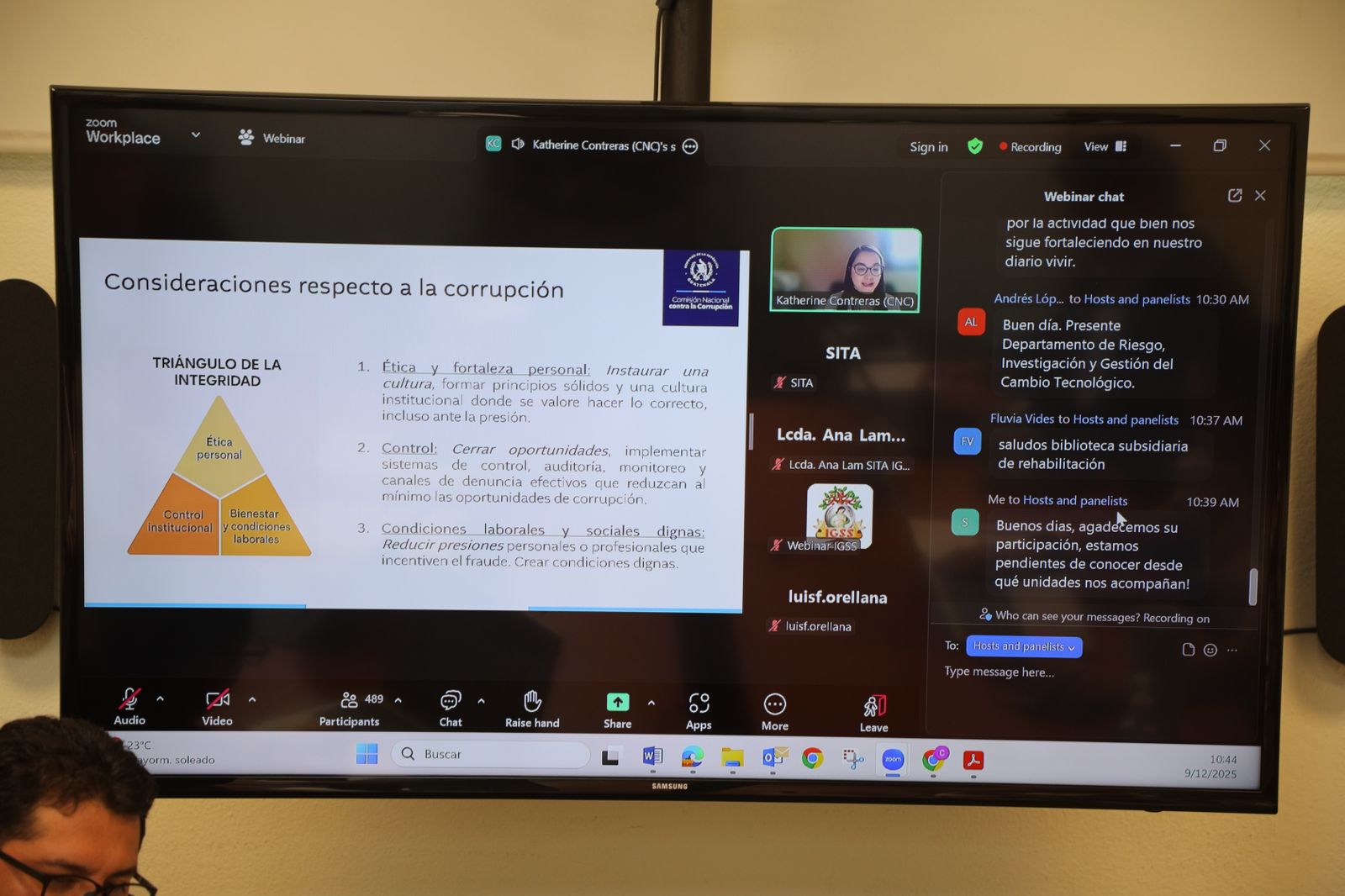 Los subgerentes del Instituto, como directores médicos de las diferentes unidades hospitalarias y personal administrativo, reafirmaron su compromiso en la lucha contra la corrupción a través de la conferencia virtual “Hacia una Cultura de Integridad”, la cual fue realizada vía Zoom para que más personas pudieran tener acceso a ella.