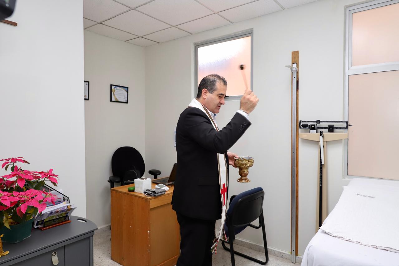 En el acto, el padre Aarón Fabrizio Tello, director general de Cáritas y delegado arzobispal, realizó la bendición de la clínica, acompañado por autoridades del Instituto. Este momento destacó la importancia de promover la salud desde la cercanía, el servicio y la protección social, valores que se comparten entre ambas instituciones.