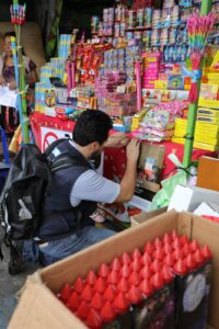 Brian Escobar Gatica, inspector de Seguridad e Higiene, recomendó a los vendedores y dueños de negocios evitar la exposición de los productos a los rayos del sol, ya que el estos generan radiación, la cual puede provocar una reacción a la pólvora y provocar graves consecuencias tanto de salud como de pérdidas económicas en los negocios.