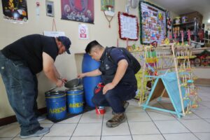 Extintor, depósitos de agua y arena, son materiales obligatorios con los que deben contar los comercios y kioscos dedicados a la venta de fuegos artificiales como manera de prevención en caso de presentarse algún conato de incendio.