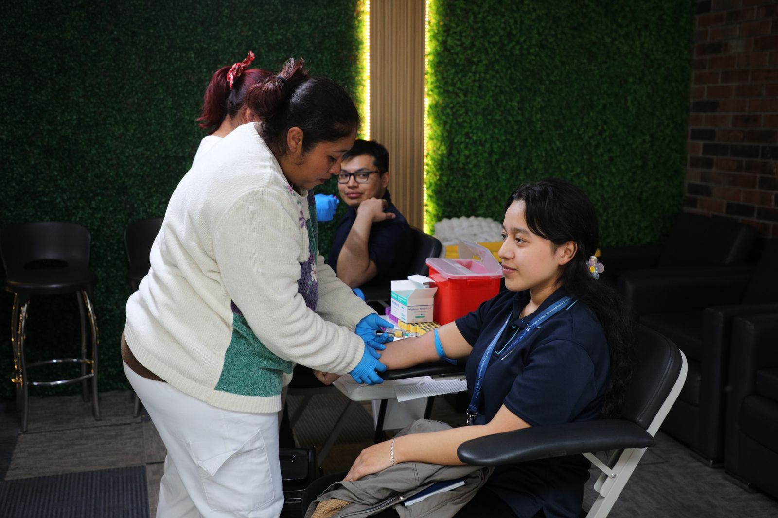 Para acercar los servicios de salud a sus afiliados, paralelamente a la inauguración el IGSS llevó a cabo una Jornada de Seguridad Social en el Contact Center de Corporación Banco Industrial, donde 350 colaboradores se realizaron exámenes de prevención.