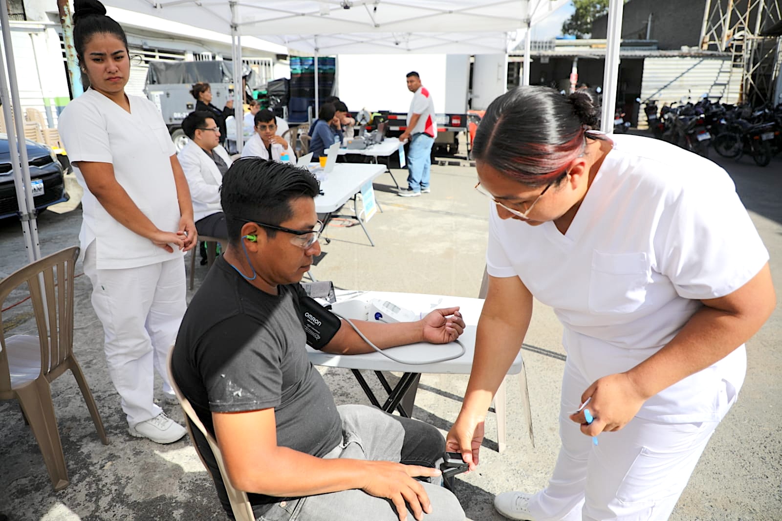 Deseosos de conocer cómo está su estado de salud en general, más de 120 colaboradores llegaron desde muy temprano para someterse a las pruebas de detección de enfermedades crónicas y toma de signos vitales.