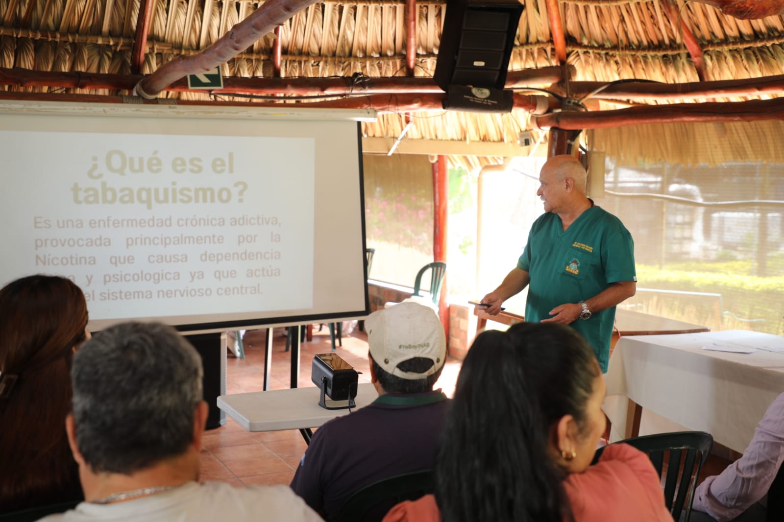 Como parte de la jornada, se brindó una charla sobre tabaquismo dirigida al personal del INAB, a cargo del Dr. Salvador Solares de Medicina Preventiva del Instituto, enfocada en crear conciencia sobre sus efectos, fortalecer la prevención y fomentar decisiones informadas para el bienestar.