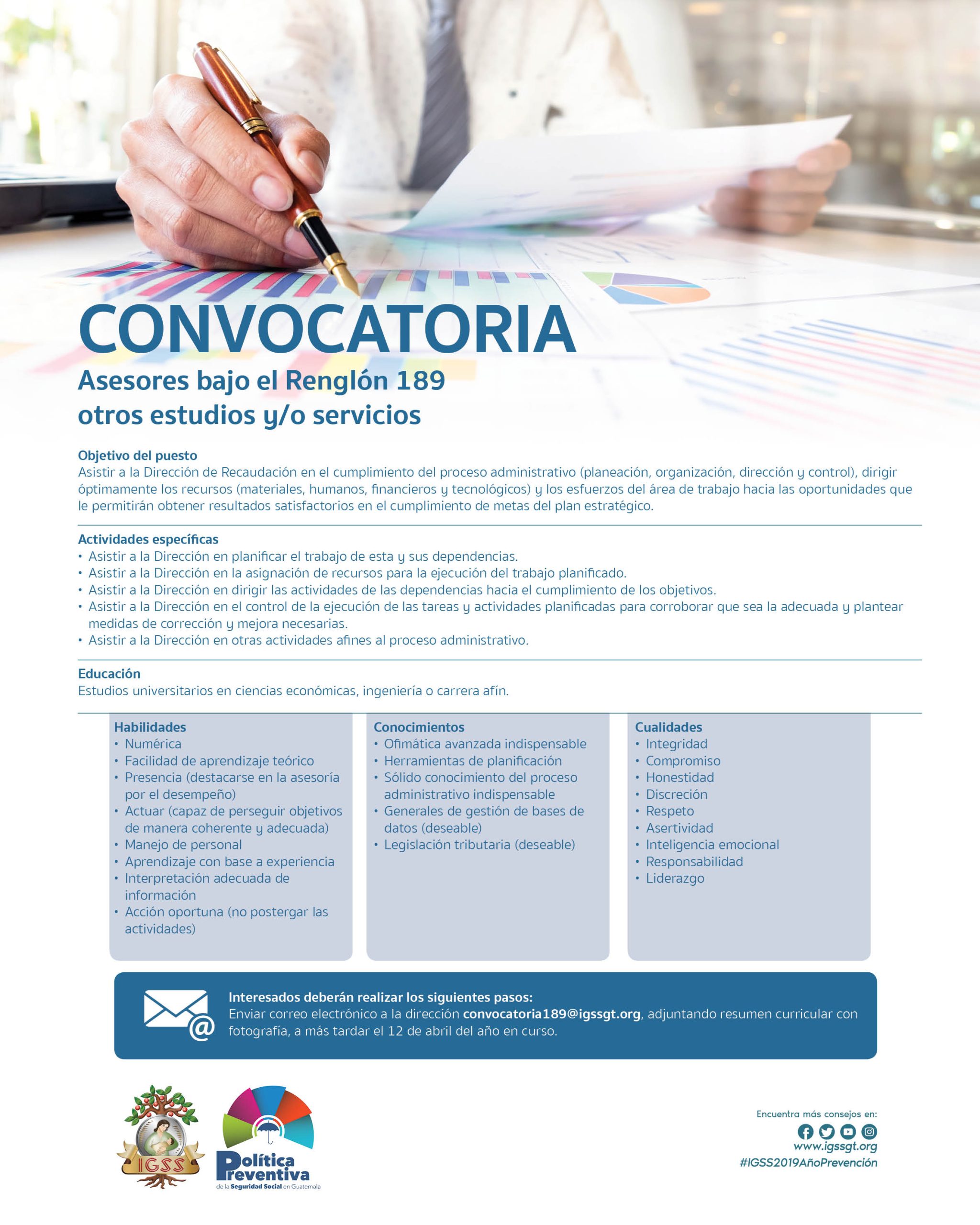Banner convocatoria recaudacion asesores renglon 189 2019