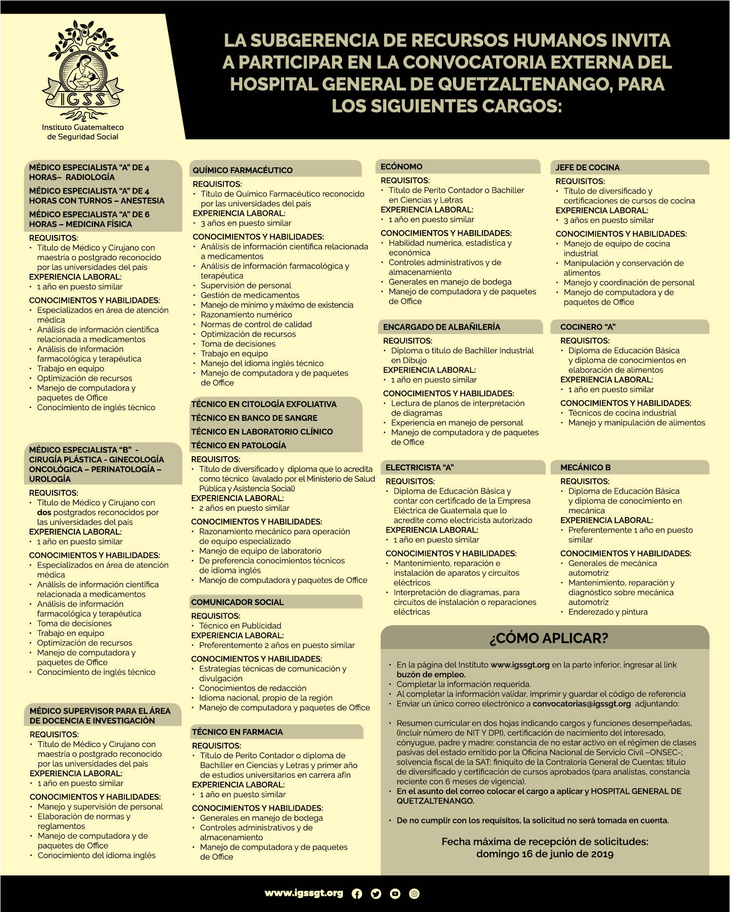 InicioConvocatoria IGSS Plazas Hospital General de Quetzaltenango mayo 2019